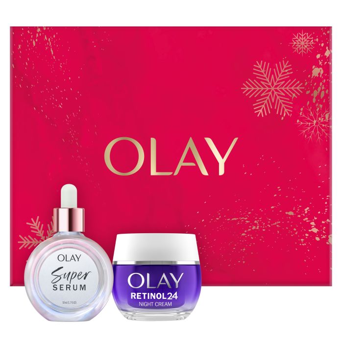 Date alla vostra pelle una trasformazione notturna completa con il cofanetto Ret24 & SS30 di Olay, che combina una crema notte rigenerante con un siero multi-azione altamente efficace.