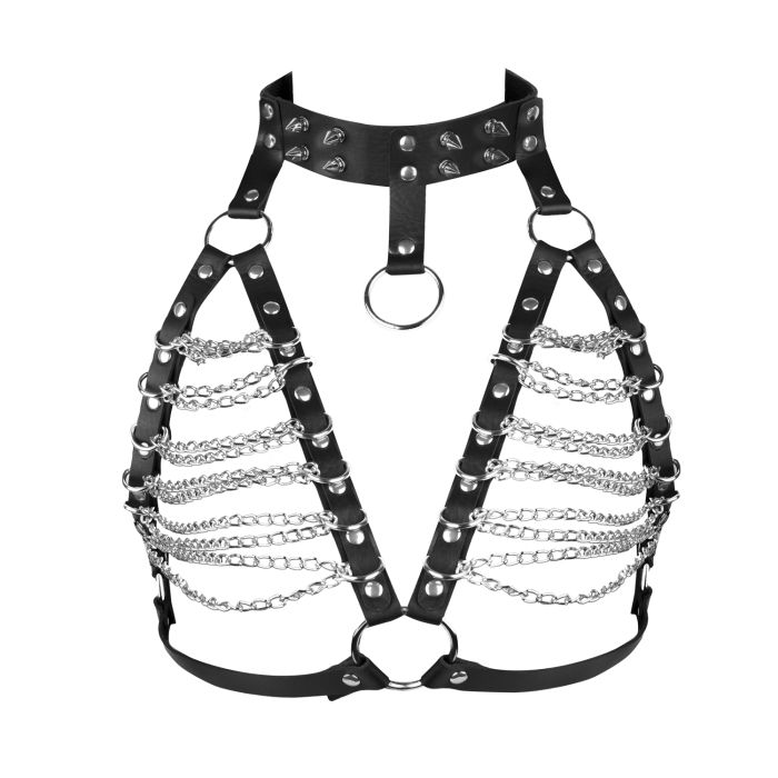 Con questa sensuale imbracatura avrete il vostro seno al centro dell'attenzione. Un design molto elaborato che aggiunge le catene per dare maggiore eleganza e originalità.