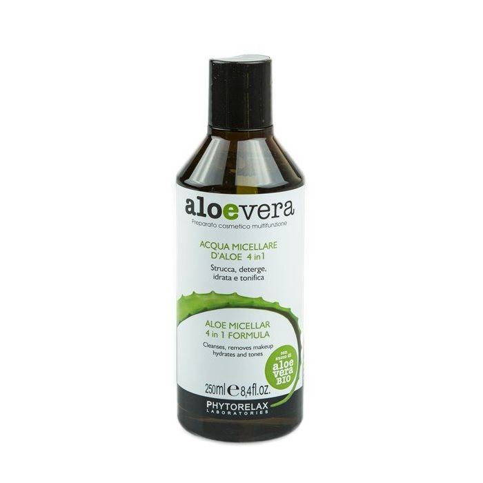 PHYTORELAX ALOE VERA MICELLARE 4 IN 1: Detergente multifunzionale a base di aloe vera. In un solo gesto, Phytorelax Acqua Micellare d'Aloe rimuove il trucco, deterge, idrata e tonifica la pelle.