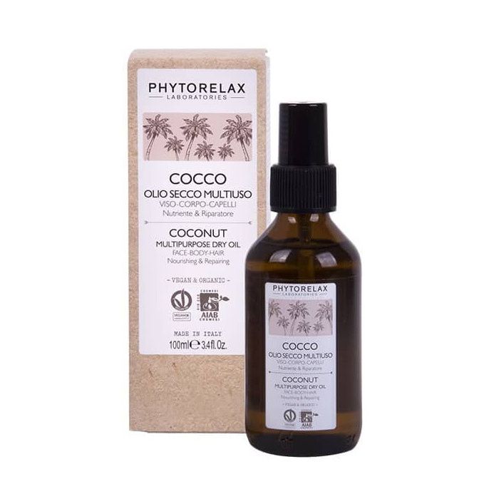 L'olio di cocco multiuso di phytorelax ha molteplici proprietà per nutrire la pelle del viso, del corpo e migliorare persino i capelli.