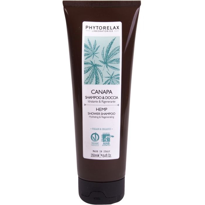 Shampoo idratante e rigenerante di canapa Phytorelax contiene delicati tensioattivi a base vegetale, ideali per l’uso quotidiano e dopo lo sport.
