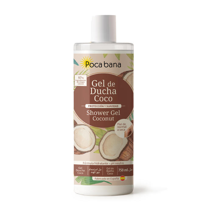 Il Gel Doccia al Cocco di Poca Bana deterge delicatamente la pelle nutrendola e proteggendola, grazie alla sua formula con il 98% di ingredienti naturali, priva di solfati e parabeni.