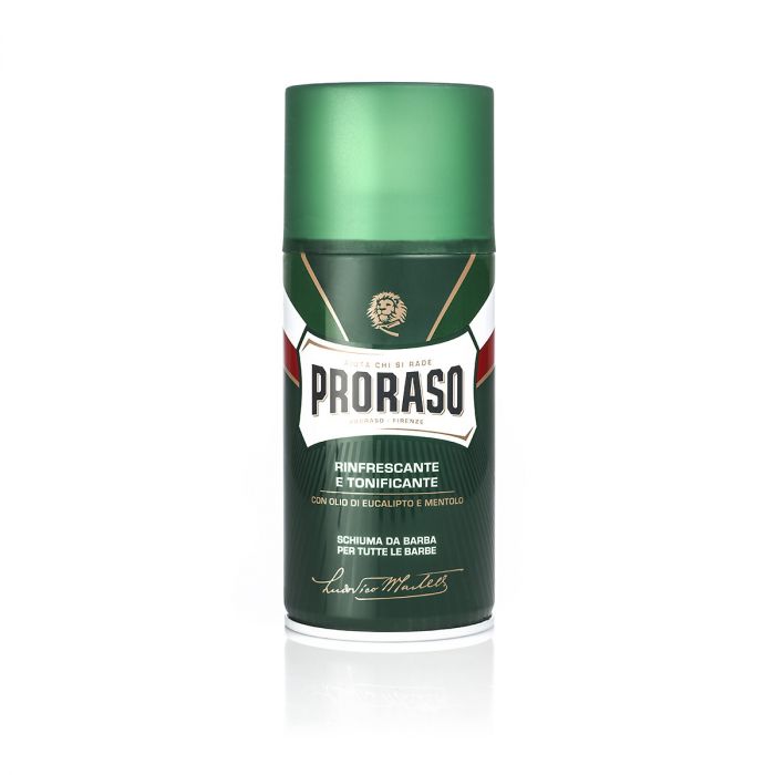 Applicare una generosa porzione di schiuma sulla mano e spargerla uniformemente sul viso umido, massaggiare delicatamente e procedere alla rasatura.