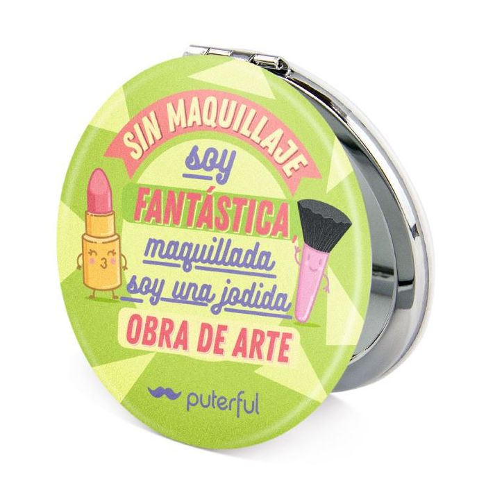 Specchio doppio da borsetta Puterful "Senza trucco sono fantastica, con il make-up sono una fottuta opera d'arte".