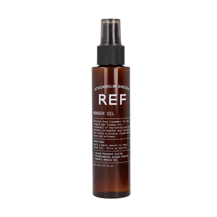 Trattamento senza siliconi per capelli secchi. Un cocktail di oli di marula, jojoba e girasole rafforza e rigenera i capelli, assicurando lucentezza e morbidezza. Protegge dai raggi UV.