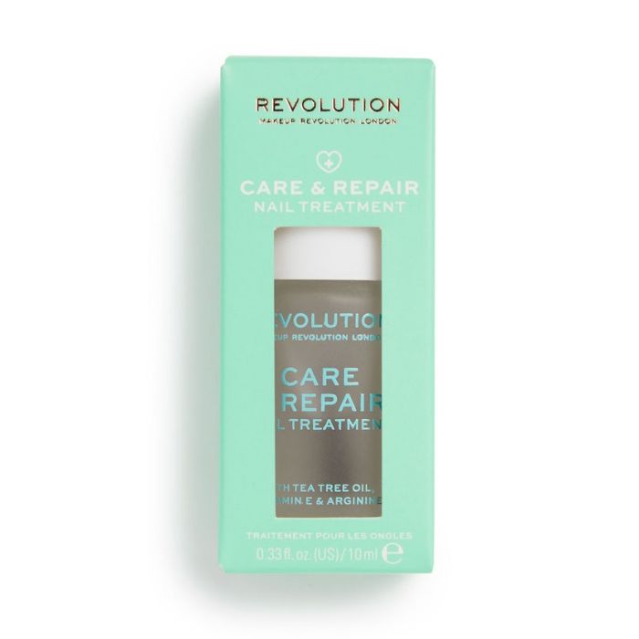 Arricchito con olio di tea tree, vitamina E e arginina, Revolution Nail Care & Repair Treatment agisce per rimediare allo scolorimento, riparare lo sfaldamento o le screpolature, promuovere la crescita e risvegliare le unghie dall'aspetto spento.