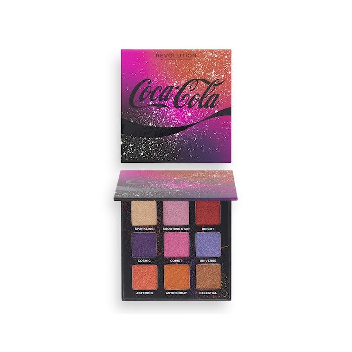 Con 9 tonalità altamente pigmentate e scintillanti, questa palette intensificherà il vostro look oltre le stelle. Cinque delle tonalità sono impresse con l'iconica forma della bottiglia di Coca-Cola, mentre la confezione presenta un design galattico.