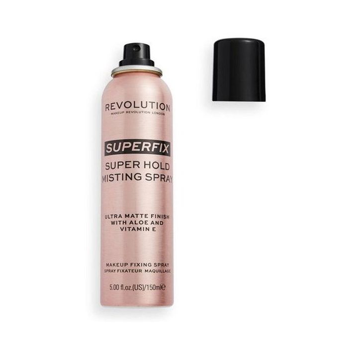 Revolution Superfix Make-up Holding Spray assicura un look matte e privo di lucentezza che non sbiadisce. Infuso con aloe e vitamina E, calma la pelle.