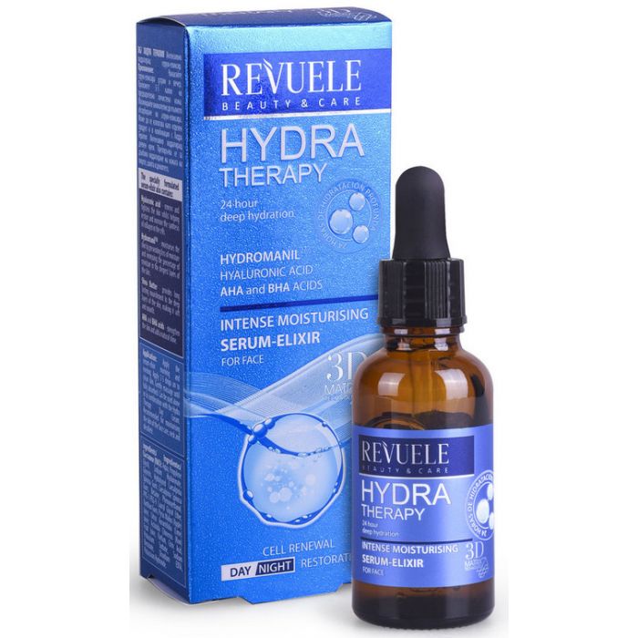 L'acido ialuronico che compone il Siero Idratante Hydra Therapy di Revuele aiuta a ripristinare e ad aumentare la sintesi del collagene nelle cellule. Uno dei suoi principali principi attivi, chiamato Hydromanil, aumenta la percentuale di idratazione negli strati più profondi della pelle che, combinata con il burro di karité, apporta un nutrimento duraturo agli strati profondi della pelle, rendendola morbida e liscia. Gli acidi AHA e BHA rafforzano la pelle e la sua naturale luminosità.