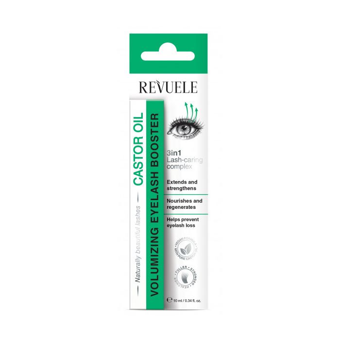 Revuele presenta il suo Volumizzatore per ciglia all'olio di ricino, un siero naturale per ciglia voluminose ed eleganti. Il potere rinforzante dell'olio di ricino agisce per ciglia più forti, più piene e più sane.