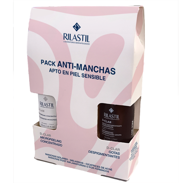 Combina Rilastil D-CLAR MICROPEELING CONCENTRATE, un concentrato esfoliante bifasico che depigmenta e illumina anche la pelle sensibile, e Rilastil D-CLAR DE-PIGMENTING DROPS, un siero anti-macchie, formulato per uniformare il tono anche della pelle più sensibile.