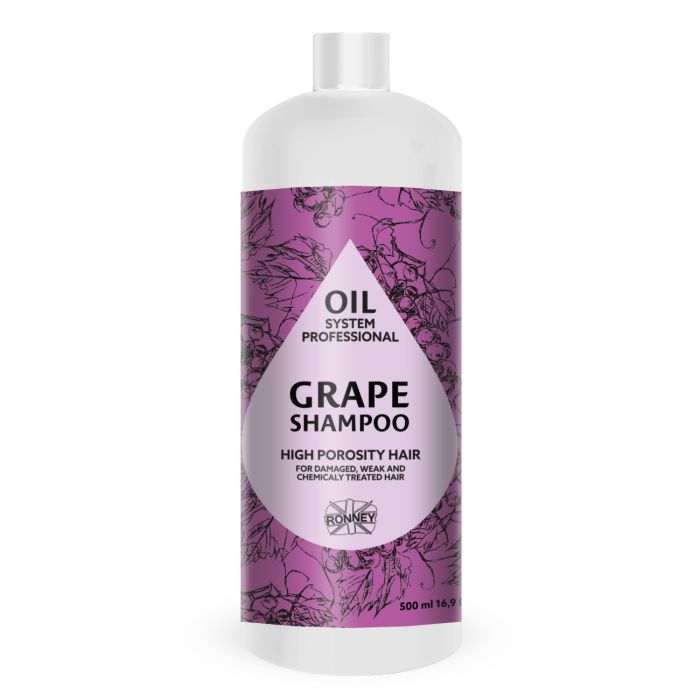 Lo shampoo Professional Oil System di Ronney con olio di semi d'uva è stato appositamente formulato per le esigenze dei capelli ad alta porosità. Questo tipo di capelli, con cuticole aperte, tende ad assorbire facilmente l'umidità, ma anche a perderla rapidamente, diventando secchi e soggetti a danni.