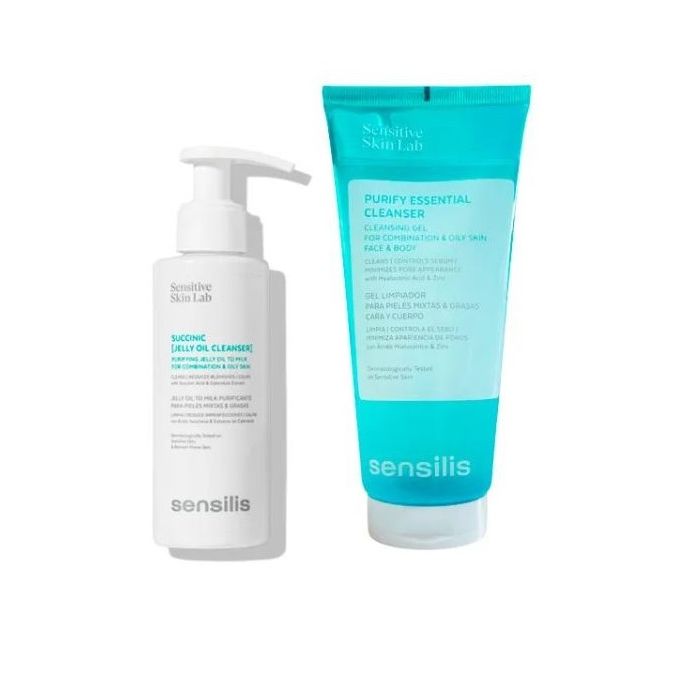 Il Sensilis Succinic Pack [Jelly Oil Cleanser 150ml + Purify Essential Cleanser 200ml] combina due detergenti per il viso altamente efficaci, studiati per fornire una pulizia profonda, controllare l'eccesso di sebo e ridurre le imperfezioni, lasciando la pelle mista, grassa o con tendenza alle macchie pulita, equilibrata e confortevole.