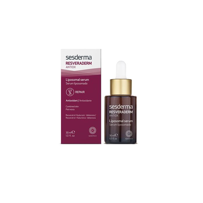 Resveraderm Liposomal Serum di Sesderma - Siero antiossidante e ringiovanente. Si tratta di un trattamento antiossidante grazie alla nanotecnologia, che trasporta gli attivi incapsulati nei nanosomi negli strati più profondi della pelle e ne massimizza gli effetti. Protegge la pelle durante il giorno dalle aggressioni subite e durante la notte corregge le rughe e la perdita di luminosità.