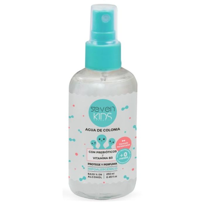 Seven Kids eau de toilette con prebiotici e vitamina B3 è un'eau de toilette per bambini con prebiotici e vitamina B3 (o niacinamide) che rafforza il sistema immunitario e rinforza la barriera naturale della pelle, proteggendola dalle aggressioni esterne e favorendone la rigenerazione.