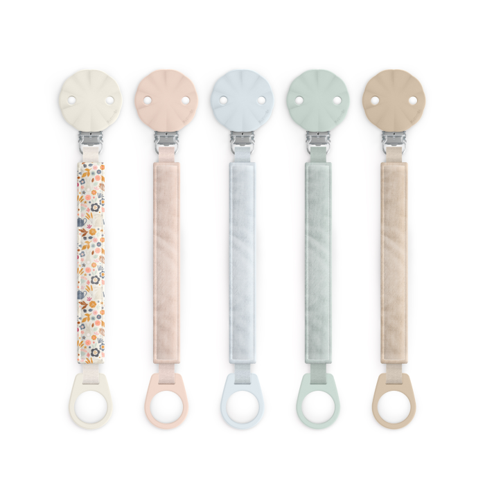 Questa spilla consente di fissare i ciucci alla ropita del bambino, evitando così che cada a terra, si sporchi o si perda. Per bambini a partire da 0 mesi. La pinza della spilla, che si fissa ai vestiti, è fissata ad un anello in cui inserire il ciuccio. Spilla con nastro tessile, reversibile e disegno stampato su entrambi i lati.