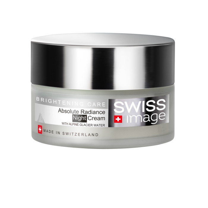 Swiss Image Crema Notte Illuminante con Niacinamide. Formula per il viso studiata per ridurre la pigmentazione e le macchie scure, migliorare la texture della pelle e rafforzare la barriera cutanea. Adatta a uomini e donne di tutti i tipi di pelle. Prodotto in Svizzera.