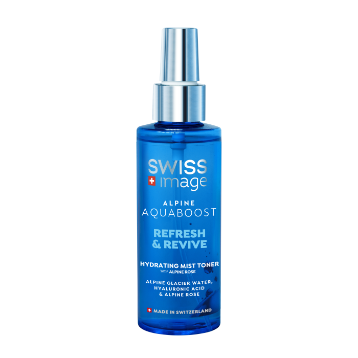 Tonico per il viso Aquaboost con acido ialuronico ed estratto di rose & rose alpine. Spray idratante con una formula leggera e priva di oli, che si assorbe rapidamente e non risulta appiccicosa o grassa. Adatto a tutti i tipi di pelle. Prodotto in Svizzera.