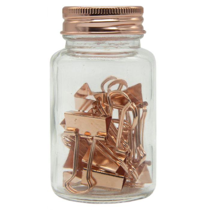 Set di 15 pinzette in oro rosa. Tutti gli appunti e/o i documenti ben organizzati.