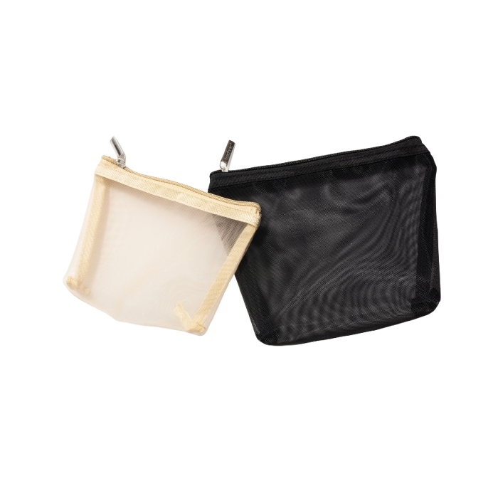 Questo set comprende due trousse per il make-up, una piccola e una media, progettate per tenere in ordine i vostri oggetti di bellezza. Il design a rete trasparente consente di trovare i prodotti preferiti a colpo d'occhio, sia a casa che in viaggio.