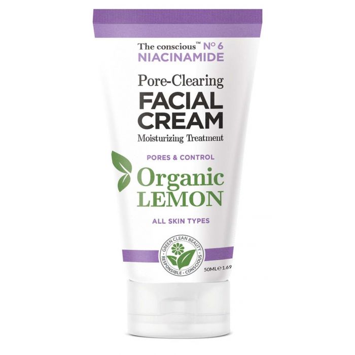 La crema viso consciousTM per il controllo dei pori con niacinamide e olio di limone biologico idrata la pelle e assorbe l'olio per affinare, levigare ed esaltare la sua naturale luminosità.