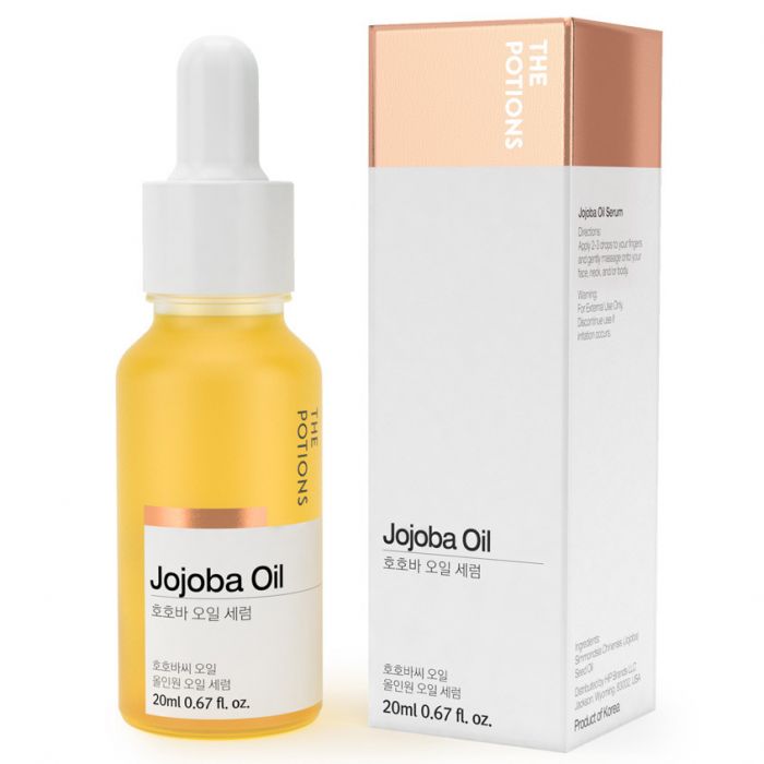 The Potions Siero di Olio di Jojoba è ricco di nutrienti, minerali e vitamine A, D ed E. il suo ingrediente stella è eccellente per mantenere la pelle sana e controllare equilibrio di olio e umidità.