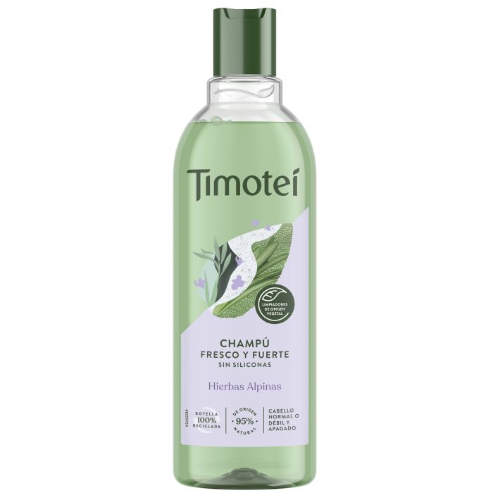 Lo shampoo alle erbe Timotei Fresh & Strong è realizzato con una selezione di erbe alpine naturali al 100%, per ottenere capelli visibilmente più belli.