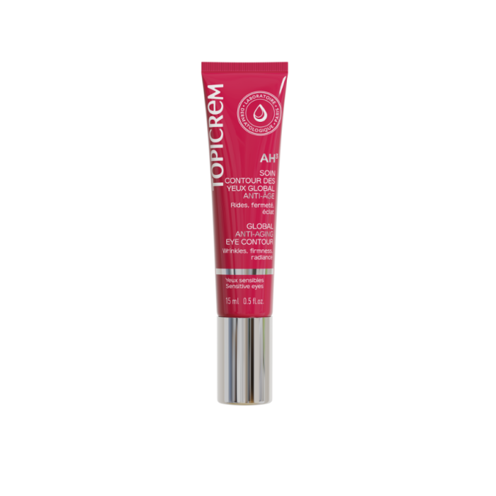 TOPICREM propone il suo AH3 Global Anti Aging Eye Contour, un trattamento specifico per la cura del contorno occhi anti-età. Questo prodotto agisce efficacemente su rughe, borse, occhiaie, mancanza di compattezza e luminosità, fornendo una cura completa per gli occhi sensibili.