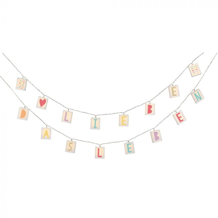 Ghirlanda metallica con 20 LED bianchi caldi per uso interno. Include 120 lettere, cifre e simboli. Fatto di plastica. Batterie incluse (2 x AA), sostituibili. Presentato in una confezione regalo.