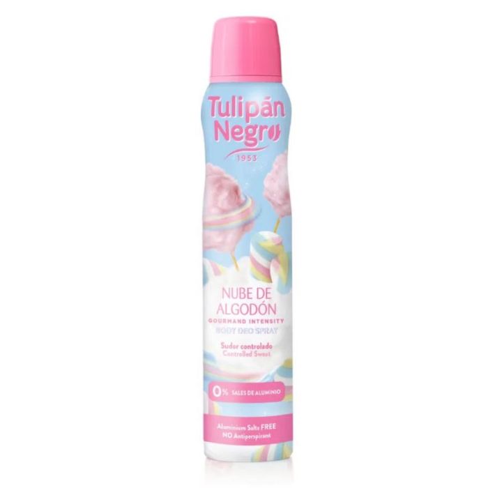 Il Deodorante Spray Zucchero Filato di Tulipán Negro offre una protezione di lunga durata e si prende cura della pelle con la sua fragranza dolce e intensa.