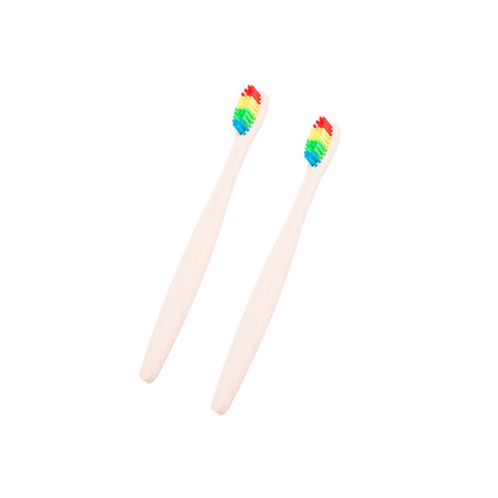 Set di 2 spazzolini in bambù con morbide setole in nylon e colori arcobaleno.
