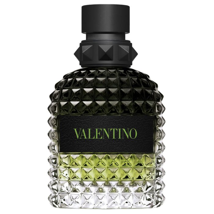 Il flacone di Born in roma Green Stravaganza rende omaggio all'iconica Rockstud di Valentino, con un design piramidale e all'avanguardia ispirato all'architettura romana, firma distintiva della Maison Valentino. La modernità del flacone è esaltata dal contrasto tra pelle nera e verde vibrante. In Valentino il verde è audace ed eccessivo, passionale e sgargiante, proprio come voi!