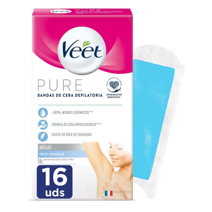 Veet Strisce di cera fredda depilatoria per ascelle include 16 strisce di cera depilatoria e 3 salviette per il finish Perfette per la depilazione delle ascelle. La formula ipoallergenica della cera Pure Skin è dermatologicamente raccomandata dalla Skin Health Alliance, che prevede una revisione scientifica da parte di un team di dermatologi indipendenti. Formulata per ridurre al minimo il numero di ingredienti necessari e il rischio di reazioni allergiche. Rimuove i peli dalla radice, lasciando la pelle liscia fino a 28 giorni.