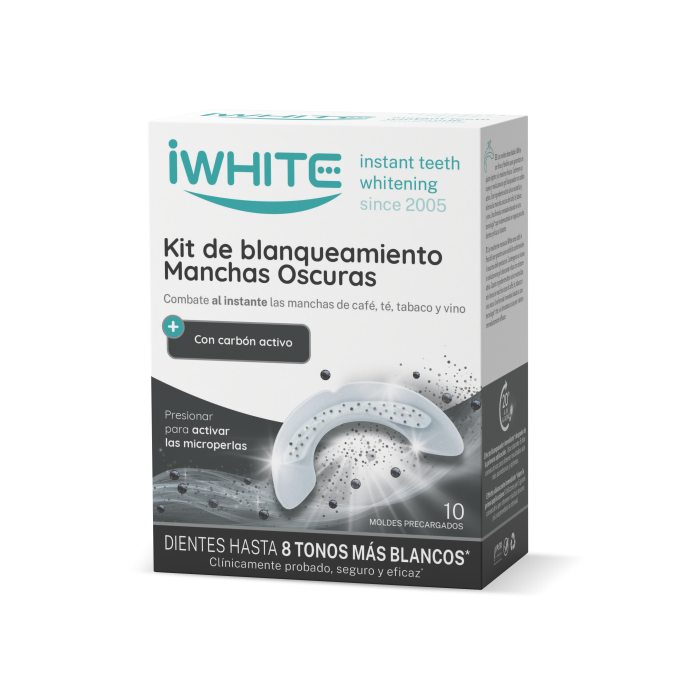 iWhite Macchie Scure è un kit per lo sbiancamento dei denti facile da usare e sicuro, formulato in modo specifico con la tecnologia di assorbimento dei Pigmenti Oscuri. Questa tecnologia si basa sul potere delle proprietà assorbenti delle microperle di carbone attivo. Queste microperle assorbono, neutralizzano ed eliminano le macchie scure e l'alito cattivo causate da tabacco, tè, caffè e/o vino. iWhite Macchie Scure previene anche la formazione di macchie.