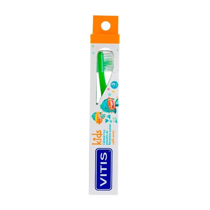 Spazzola per bambini Vitis progettata per bambini dai tre anni in su. Le morbide setole in Tynex di alta qualità offrono al tuo bambino un’igiene orale ottimale e semplice. Protegge la bocca con una pulizia adeguata, evitando malattie orali e carie.
