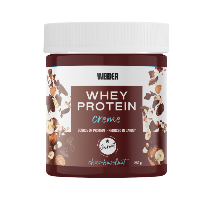Crema di nocciole e cacao ad alto contenuto proteico.