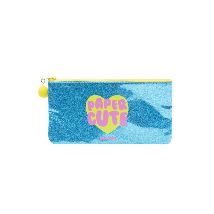 Accessori che brillano! Questo astuccio azzurro con glitter e pom-pom sulla cerniera è l'accessorio ideale per trasportare il materiale scolastico, ma se volete potete usarlo anche per riporre make-up, accessori... tutto ciò che vi viene in mente.