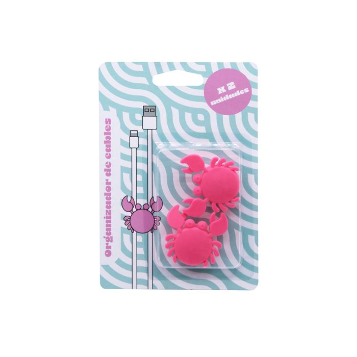 Organizzatore per cavi in silicone a forma di granchio. Avrete sempre tutti i vostri cavi protetti e organizzati. Contiene due pezzi in silicone e adesivo sul retro. Modo d'uso: pulire la superficie con un panno. Scegliere dove posizionare il pezzo. Rimuovere la carta autoadesiva e posizionare saldamente fino a quando non si attacca.