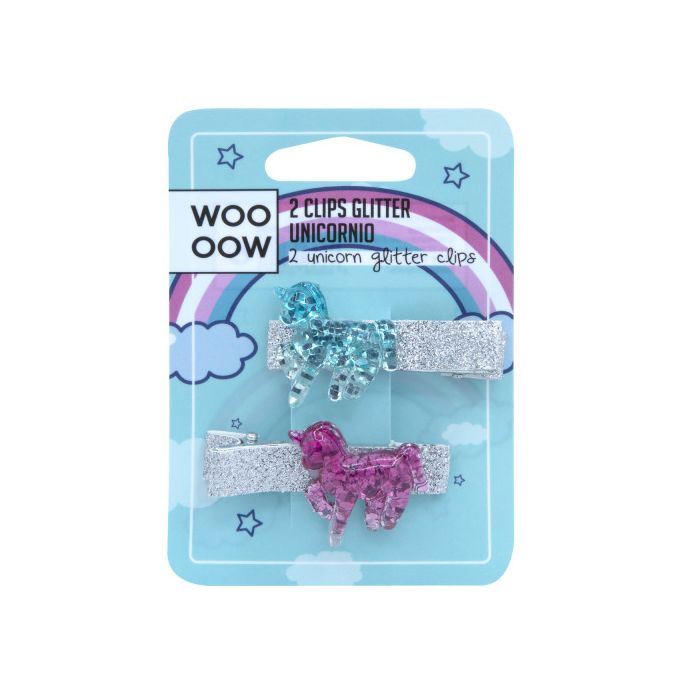 WOOOW Set 2 clip Glitter Unicorno