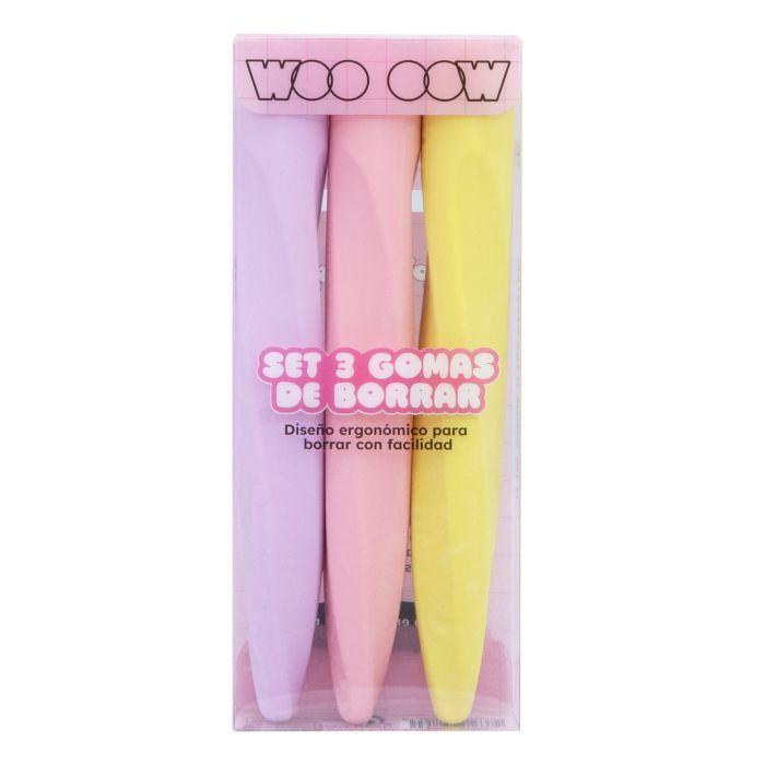 Questo set di 3 gomme a forma di "pennarello" è ideale per il ritorno a scuola o in ufficio. Grazie al loro design ergonomico, sono facili da cancellare e comodissime da usare.