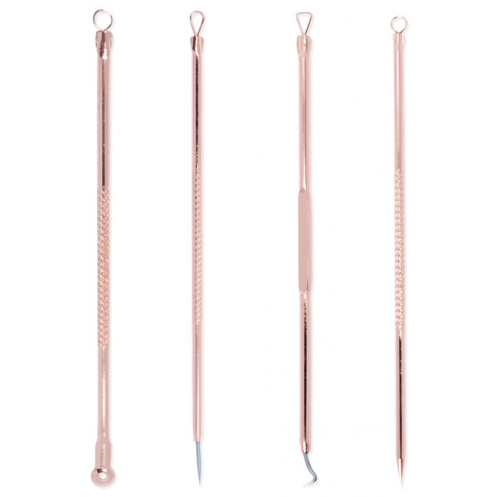 Realizzato in acciaio inossidabile, questo set include quattro strumenti con otto teste diverse che facilitano la pulizia igienica di macchie nere, brufoli e imperfezioni della pelle con maggiore precisione.