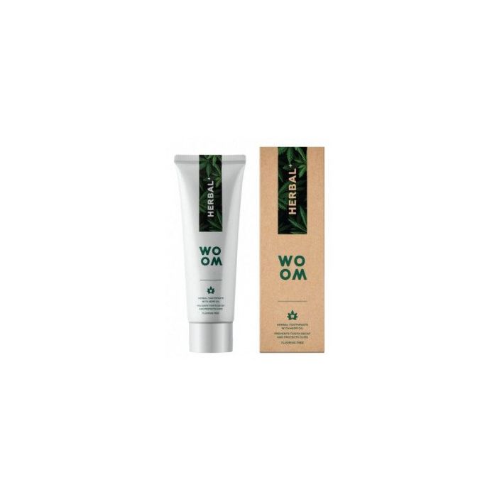 Dentifricio Woom Herbal+, è un dentifricio naturale con olio di canapa e senza fluoro. Contiene fino al 95% di ingredienti naturali. La speciale composizione a base di olio di canapa protegge le gengive e previene la carie dentale. È adatto ai consumatori vegani.