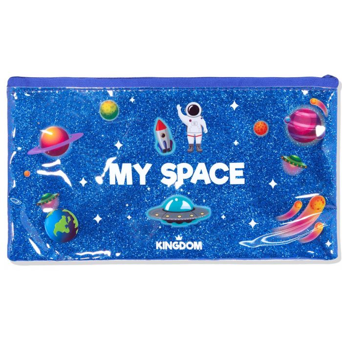 Astuccio con cerniera e stampa Space Tee effetto glitter.