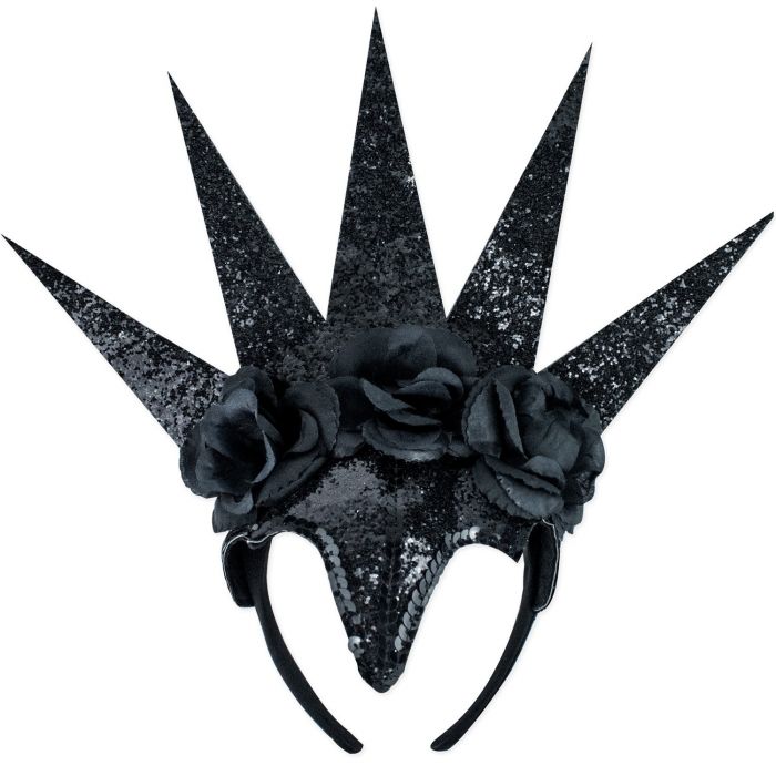 Ottima fascia per capelli nera effetto glitter con tiara e fiori, per un look da principessa delle mille e un bagliore serale a Halloween.