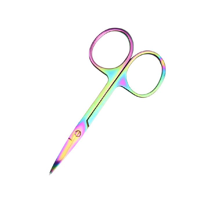 Forbici metalliche in acciaio inossidabile con effetto olografico e punta ricurva. Ideali per la manicure e la pedicure.