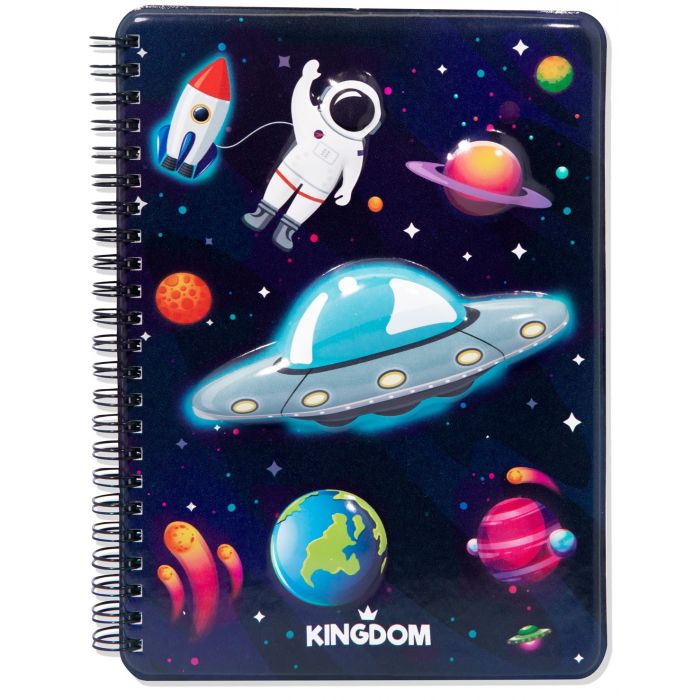 Taccuino con anelli bianchi da 80 fogli con copertina in pasta dura e design spaziale effetto 3D.