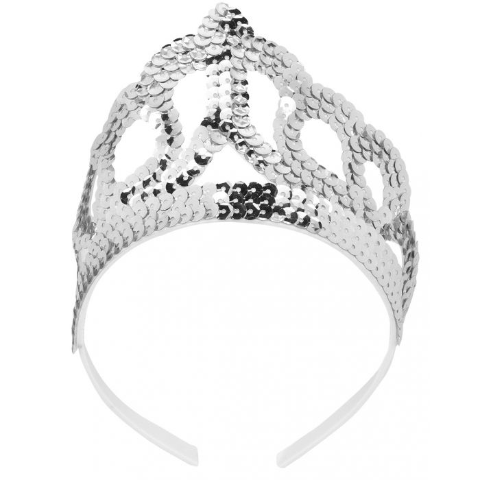 Corona con applicazioni di paillettes argentate.