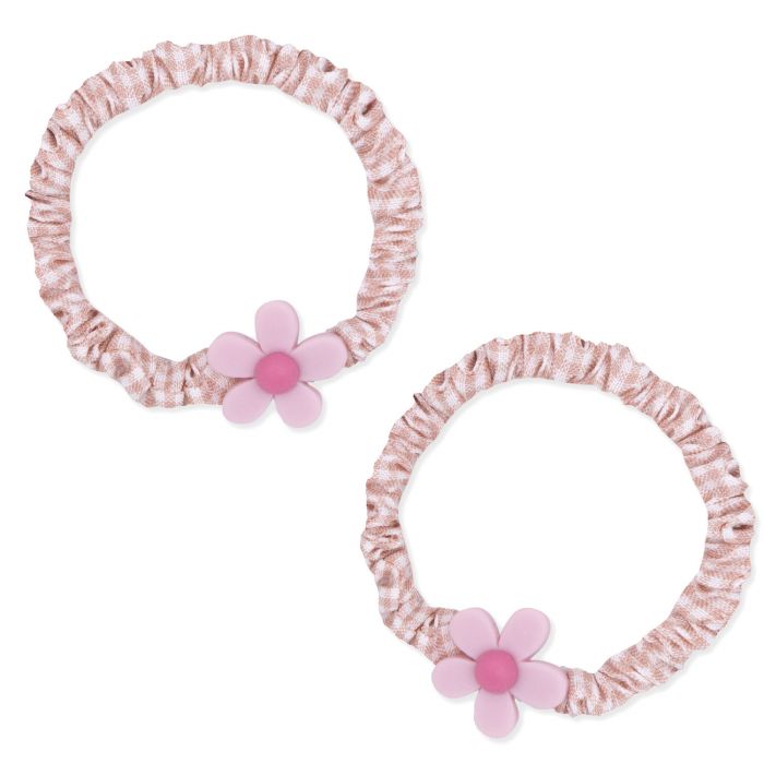 Set 2 coleteros arricciato con stampa a quadretti gingham rosa e dettaglio floreale. L'accessorio perfetto per decorare i raccolti delle tue Princess.