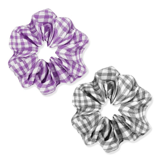 Set con 2 elastici per capelli scrunchies foderati in tessuto con stampa Vichy. L’accessorio perfetto per decorare i tuoi capi Princess.