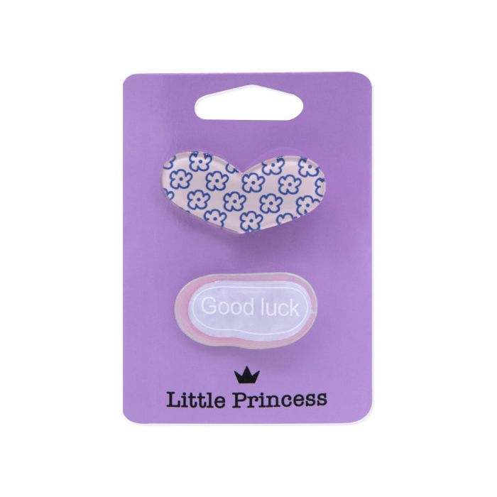 You Are The Princess Little Princess Set 2 Clip Cuore e Good Luck in acrilico con un tocco di glitter.